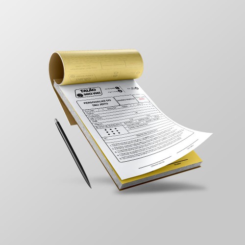 Material: 1ª Via Branca e 2ª Via Amarela 53g/m²